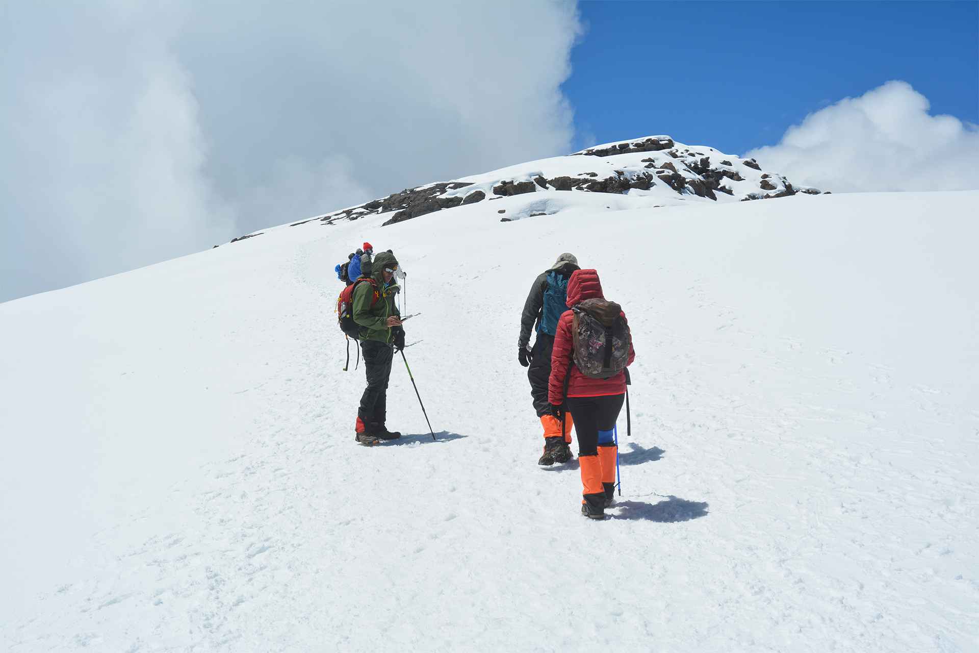 The usual ratio is three or four local staff for each climber, although small groups may have four or five staff per climber. The staff usually consists of an English speaking guide or guides, a professional cooker, and gear-carrying porters. We encourage you to interact with your staff. They are all trustworthy, local people who have grown up in the shadow of the mountain. Many of them have climbed the peak a hundred or more times.