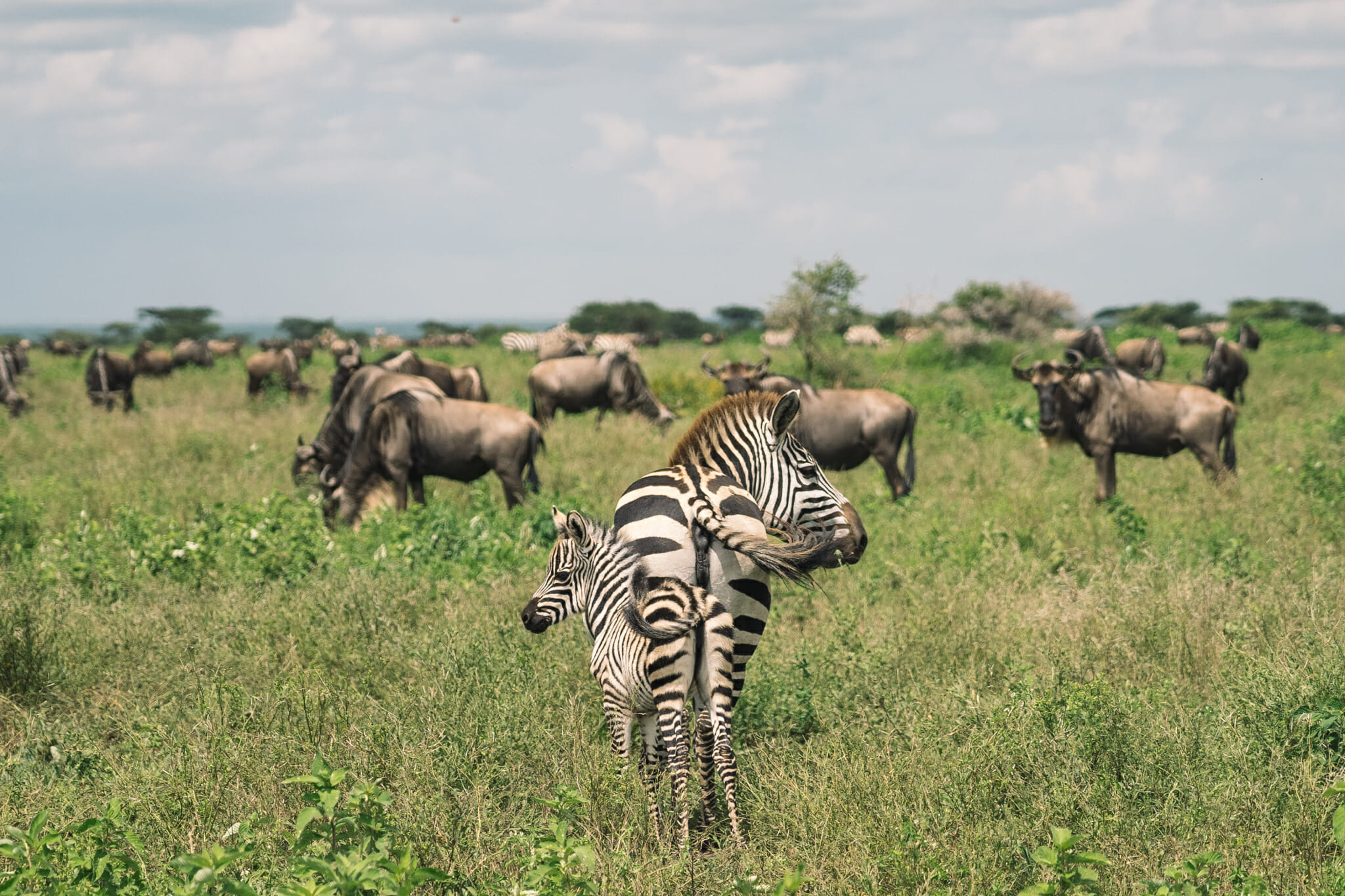 Serengeti National Park covers 1.5 million hectares of savannah, the annual migration of two million wildebeest plus hundreds of thousands of gazelles and zebras - followed by their predators on their annual migration in search of pasture and water - is one of the most impressive natural spectacles in the world. The park's biodiversity is very high with at least four globally threatened or endangered species: black rhino, elephant, wild dog and cheetah.